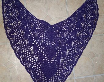 A purple knitted shawl with a complex pattern is draped over a tiled floor. The shawl has a V-shaped opening at the top and is made of a dense, textured fabric with a variety of stitches. The floor tiles are light-colored, and the shawl casts a soft shadow on the surface. | Calypso Wrap | d22ba202d854e8aedced058b67335cf9d5b00e050c9513cbc71715fc6d0d3e18 | 000720954301 | 0 | 0 | 51 | 2 | 0 | 0 | |