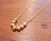 A golden necklace with a series of interconnected hexagonal beads is lying on a wooden surface. The beads are arranged in a chain-like pattern, and the necklace is positioned diagonally across the image. The wooden surface has a warm tone and is visible in the background. | Gold Nugget Beaded Necklace | 45f3e659b756dd02d3e0736c7f6094d6760cf01713b4d21c80723de7a910afcd | 000720954199 | 0 | 0 | 46 | 4 | 0 | 0 | |
