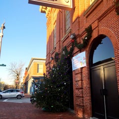 A red brick building with a large Christmas tree in front of it. The tree is decorated with colorful lights and ornaments. There is a sign above the tree that reads 'Christmas'. The building has a large arched doorway with a glass window, and there is a street lamp to the left of the building. The sky is clear and blue. | Photo taken at Hollins Market by Kortney E. on 12/19/2015 | b97a85a2b3f8348670d99d963d66849666f90c091cc28fbed0bab01699780a19 | 000720954508 | 0 | 0 | 61 | 10 | 0 | 0 | |