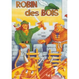 The first image depicts a children's book cover titled 'ROBIN DES BOIS' with a cartoon illustration of Robin Hood in a green tunic and hat, holding a sword and standing in front of a stone wall. He is surrounded by various cartoon characters, including a man in a brown robe, a woman in a blue dress, and a group of animals such as a pig, a dog, and a horse. The background features a castle and a clear sky. | DVD FILM ROBIN DES BOIS - EDIT PRISM VISION - DVD | 9e103a88cda6b9d3a18ba22414d95e57ea4f2a210822e031731bcb3718436b7f | 000720954723 | 0 | 0 | 79 | 11 | 0 | 0 | |