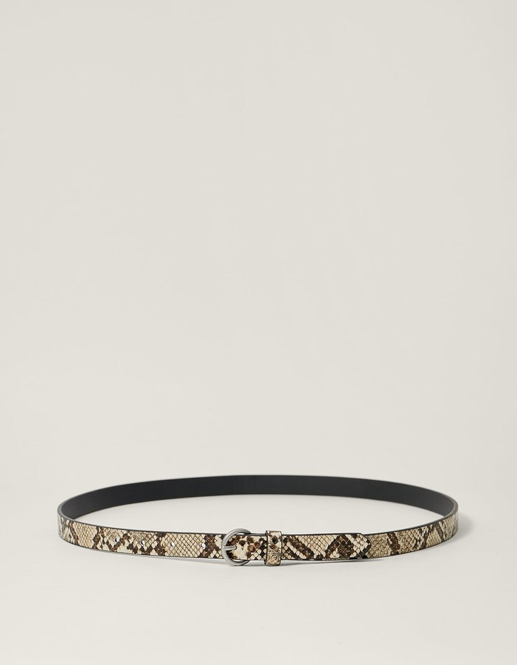 A black leather belt with a snake skin pattern and a silver buckle is displayed against a white background. | Ceinture fine imitation serpent | 443ee7be0f3a963032cc575687a0fd56fc40a5003b03b6ca2745ff41111c99f0 | 000720954750 | 0 | 0 | 19 | 4 | 0 | 0 | |