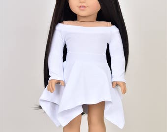 A white dress with a fitted bodice and a flared skirt is worn by a doll with long black hair. | UnEven Skirt 18 inch doll clothes color White | afd271bac1a3b1432293ea27408b945b265b23bb53766626a0bcc0c1035b510c | 000720956023 | 0 | 0 | 20 | 8 | 0 | 0 | |