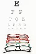 A pair of glasses with a red frame is placed on top of a pair of glasses with a green frame, which is placed on top of a pair of glasses with a pink frame, which is placed on top of a pair of glasses with a blue frame. The glasses are all positioned in front of a large eye chart with the letters 'E', 'F', 'P', 'F', 'O', 'Z', 'E', 'D', 'L', 'E', 'D', 'C', 'E', 'D', 'C', 'E', 'D', 'C', 'E', 'D', ' | eyeglasses on an eye chart - stock photo | 02fa1a7d6a7a3f61f8ab5c2b8ea4aef53f752609d6bfeb871325a4be5bc5b654 | 000720956399 | 0 | 0 | 85 | 8 | 0 | 0 | |