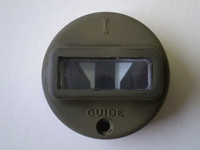 A green, rectangular-shaped object with a circular cutout in the center is attached to a white surface. The object has a label that reads 'GUIDE' in white letters. The surface appears to be a wall, and the object is positioned at the center of the image. | 4914-42M Guide marker light door with lens, NOS | 045f918e7912767f6daeb4362c43720edfccd1e17ca76668912f505403c64e59 | 000720956240 | 0 | 0 | 46 | 8 | 0 | 0 | |