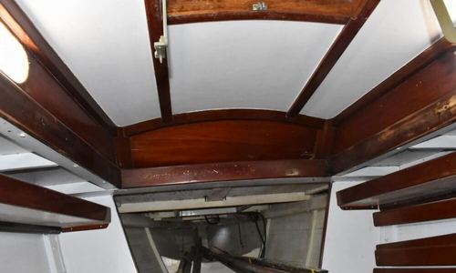 The first image shows the interior of a boat with a wooden ceiling and walls. There is a wooden ladder leading up to the ceiling, and the ceiling has a curved shape. The walls have wooden panels, and there is a small window on the left side of the image. The overall color scheme is warm with brown tones. | Image of William Garden 45 Yawl for sale in United States of America for $45,000 (\xc2\xa334,329) Gardena, Ca 90248 - Chang, California, United States of America | c9cfe7f0c413b5e4a717aa5b69344d7330facad623c28f648daa7a43160772ec | 000720957141 | 0 | 0 | 59 | 26 | 0 | 0 | |