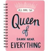 A pink spiral notebook with a cover that reads 'All hail the Queen of Damn Near Everything' in black and blue text. The notebook has a crown design at the top of the cover. | Queen Of Everything Notebook | 2c6fb687442363e19a5838926fa6be332da4edab3440a4bb129a395ef3a5f0f2 | 000720957514 | 0 | 0 | 34 | 4 | 0 | 0 | |