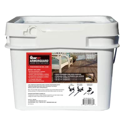 A white plastic bucket with a lid is displayed against a white background. The bucket is labeled with the brand name 'ArmorGuard' and has a red and black sticker with instructions and safety precautions. The lid is closed, and the bucket appears to be full. | ArmorGuard Hidden Deck Fastener Bucket (900 per Count) | c518b5ed968782a14e7e6ea4b8210f0abd86930c2dbccb8f93c21c4c3ab6c165 | 000720957534 | 0 | 0 | 45 | 8 | 0 | 0 | |