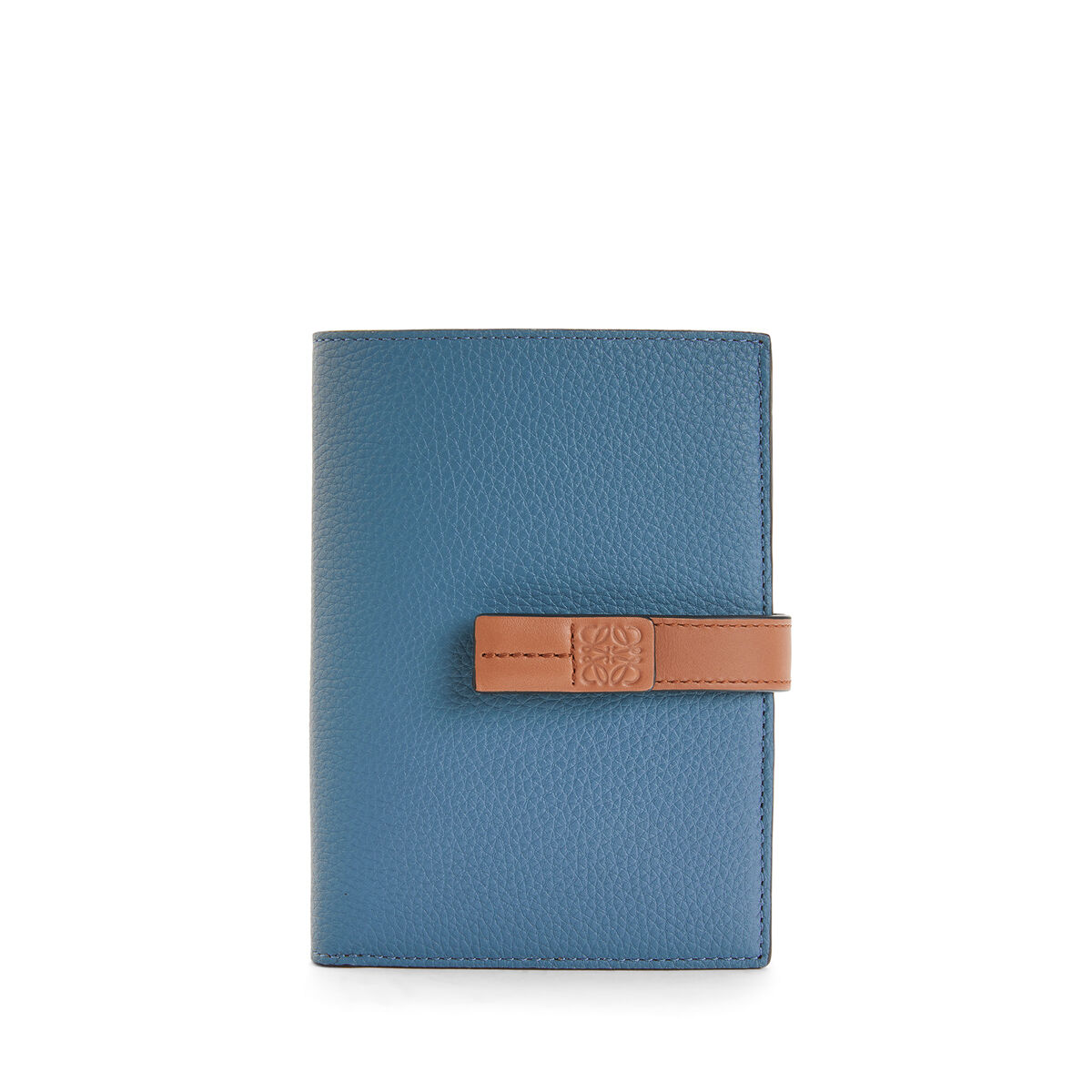 A blue leather notebook with a brown leather bookmark and a debossed logo on the cover. | LOEWE Medium Vertical Wallet Steel Blue/Tan front | 7d81fa5f0f7eabdec516d30b1fbb7a1de20a32d06c659a7a41100a278ccaf3c4 | 000720957458 | 0 | 0 | 16 | 7 | 0 | 0 | |