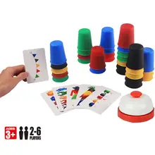 A set of colorful stacking cups is displayed on a white background. The cups are arranged in a semi-circle with the largest cup at the top and the smallest at the bottom. In the foreground, there is a set of playing cards with a hand holding one of the cards. Below the cards, there is a white and red lid with a red knob on top. The image has a 3+2-6 players label in the bottom right corner. | Desktop Parent-Child Interactive Puzzle Classic Card Games Outdoor Indoor Speed Cups Family Children Board Quick Funny Toys | d5dcd88c31b4efc1aca7bc62b3e8c5d6682c623b375ff6eda9122b17c7c22683 | 000720957561 | 0 | 0 | 78 | 17 | 0 | 0 | |