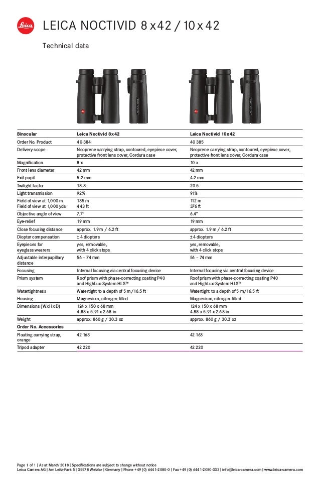 A technical data sheet for a camera, featuring specifications such as lens type, focal length, aperture, and other technical details. The sheet includes a table with columns for different camera settings and a row for each camera model. The sheet is titled 'LEICA NCTIVID 8 x 42 / 10 x 42' and has a red border at the top. | Technical data\nPage 1 of 1 I As at March 2018 I Specifications are subject to change without notice\nLeica Camera AG I Am L... | 31dcaad18f27df36b4bb9d9ebcff0d06bb12a8edceaaaf81b8eafaad53176f73 | 000720958408 | 0 | 0 | 59 | 23 | 0 | 0 | |