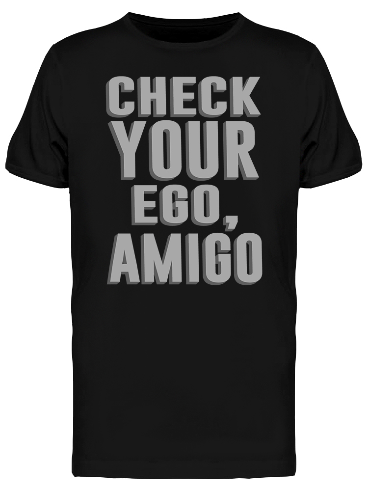 A black t-shirt with the phrase 'CHECK YOUR EGO, AMIGO' in white, bold, and stylized font. The shirt is displayed against a white background, and the image is a close-up of the front of the shirt. | Mad Over Shirts Check Your Ego Amigo Best Selling Cool Awesome Quote Unisex Premium Tank Top | ffc4371d3f4a7e4b6ba45e3256c16d80b2ef60e51fab3d768feb9d83f7945af4 | 000720925526 | 0 | 0 | 36 | 16 | 0 | 0 | |