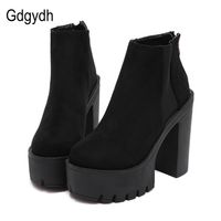 A pair of black high-heeled boots with a pointed toe and a thick, chunky heel. The boots have a zipper on the side and a strap that wraps around the ankle. The material appears to be a smooth, shiny leather. | Gdgydh Fashion Black Ankle Boots For Women Thick Heels Spring Autumn Flock Platform Shoes High Heels Black Zipper Ladies Boots 211021 | ab639e2353237b1a64a53c9319b585dda799440f956c62dba854d59575c43f48 | 000720925453 | 0 | 0 | 40 | 21 | 0 | 0 | |