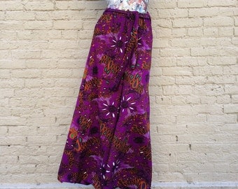 A person wearing a colorful floral patterned skirt is standing against a brick wall. | 70s Palazzo Pants Vintage Purple Mod small medium | a3b7aed02f29dcd460c1cb7bec436b085c87d607a48326152840a9dce85ed647 | 000720958618 | 0 | 0 | 14 | 8 | 0 | 0 | |