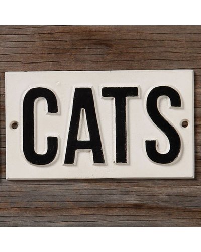 A wooden sign with the word 'CATS' in a bold, black font on a white background. The sign has a wooden texture and is mounted on a wooden surface. | HomArt Cast Iron Sign - CATS | bbc0521816b5af3705201d0fcda84172e80d81967a7c8fc55d5839907517110e | 000720958740 | 0 | 0 | 29 | 6 | 0 | 0 | |