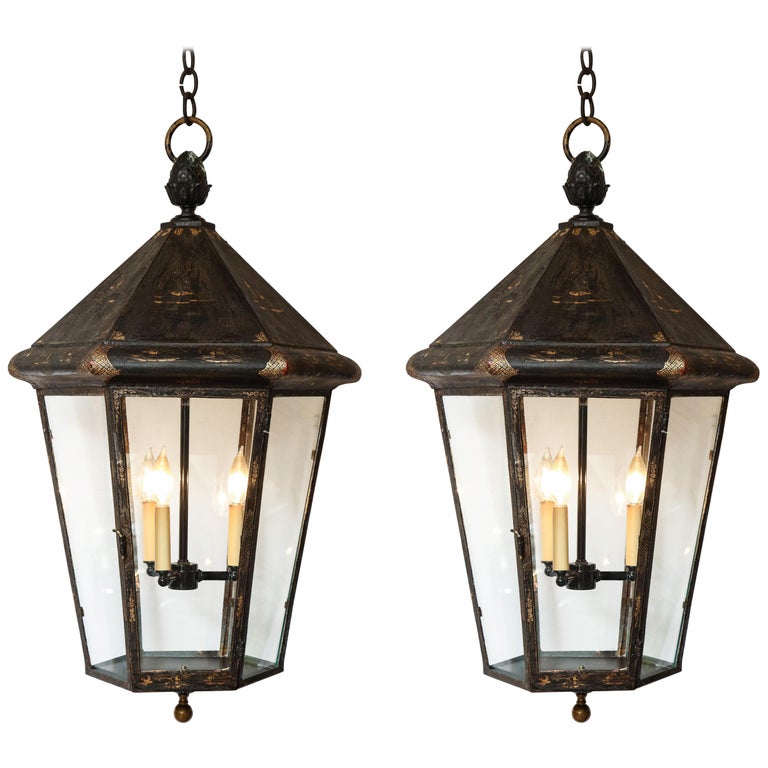 A pair of vintage-style lantern-style wall lights with a distressed metal finish and clear glass panels. Each light has three lit candles inside, and they are mounted on a wall with a white background. | Pair of Blackened British Lanterns For Sale | c1dc846e71f9c69b2df1332dd3fdcd544325edd8c53e28c01c0f50c0145e6f63 | 000720959861 | 0 | 0 | 34 | 7 | 0 | 0 | |