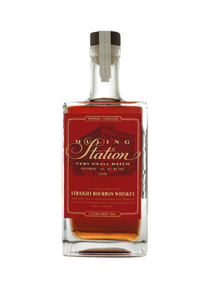 A bottle of bourbon whiskey with a red label featuring the text 'Hoeing Station' and a logo. The bottle is clear glass, and the label has a decorative border with a mountain illustration. The bottle is set against a white background. | Old Dominick Huling Station Very Small Batch Straight Bourbon Whiskey | 14d4c7b8cdcfdf5145e3e99913bc30d199d1f8256a696d17e32c8d662b1d7176 | 000720959860 | 0 | 0 | 41 | 10 | 0 | 0 | |