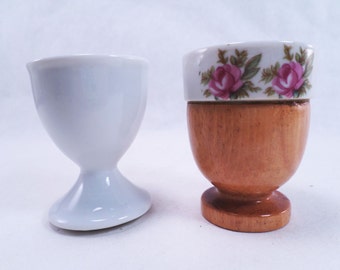 A white porcelain egg cup with a floral design sits next to a wooden egg cup with a floral design. | Egg Cups Mini Succulent Planters Vintage 60s | 141f5a9a0c95ea940a65142875756fb0b9d88f0c1af6baef93a60dede8d73e61 | 000720925581 | 0 | 0 | 20 | 7 | 0 | 0 | |