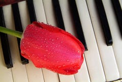 A close-up of a red rose with water droplets on its petals, placed on a piano keyboard. The piano keys are white and black, and the rose is positioned in the center of the image, with the petals slightly overlapping the keys. | Composition tulip flowers and accordion Stock Photo | f15ce6cd13546efe34fb3d189eac54b2dae0653533497e5f358241b2c1a03ee5 | 000720925587 | 0 | 0 | 42 | 7 | 0 | 0 | |