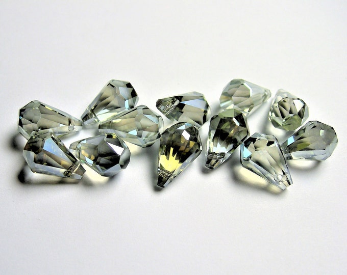 A collection of variously shaped and sized clear gemstones is displayed on a white background. The gemstones have a transparent appearance with a hint of yellow and blue hues, and they are arranged in a way that showcases their different shapes and sizes. | Crystal briolette - 12 pcs - 9mmx14mm - top sideways drill - Faceted teardrop crystal beads - mystic smoky green ab - CBC4 | 4fbb55883ecbcf7e06b3dd4ce36471b92557dd6056c649b370ed3b14d01e20b7 | 000720960846 | 0 | 0 | 43 | 23 | 0 | 0 | |