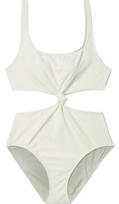 A white bikini top with a halter neck design and a white bikini bottom with a high waist and a cutout detail on the side. | Solid & Striped The Bailey Knotted Cutout Swimsuit | 9e12ef5fb989d4b9c9e2588abdd008ad2421c29439c03a9aaacd202b0105cc90 | 000720961286 | 0 | 0 | 25 | 8 | 0 | 0 |