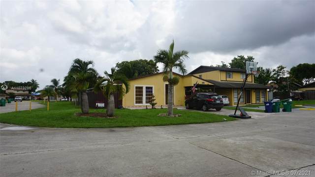 A yellow house with a brown roof is surrounded by a lush green lawn. There are several palm trees in the front yard, and a basketball hoop is visible to the right of the house. A black car is parked in the driveway, and there are two green trash cans near the house. The sky is partly cloudy. | 19345 NW 56th Pl, Miami Gardens, FL 33055 (MLS #A11073286) :: The Teri Arbogast Team at Keller Williams Partners SW | 3728fe97c75ee2d4f0ad8eb64dd9c384019f966ae1d39061e7fde451e81019da | 000720961431 | 0 | 0 | 58 | 20 | 0 | 0 | |