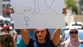A woman is holding a white sign with a black marker drawing of a person and the word 'woman' written in Arabic. She is wearing sunglasses and a blue shirt. In the background, there are several people and cars, with one person wearing a red headscarf. | A woman holds a sign calling for an end to violence | b96441f77de3fa31e35a76ed1bf499418d55b358a30bb7a75d472d94d755081c | 000720961358 | 0 | 0 | 46 | 11 | 0 | 0 | |