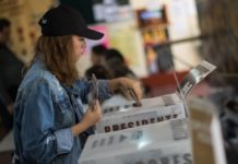 A person is standing in front of a display with various items, including a newspaper with the headline 'DECRETO DECRETO DECRETO'. The person is wearing a black cap and a denim jacket. There are other people in the background, and the scene appears to be indoors with a wall and a window visible. | jornada electoral 2018 | 5b37a3bfa4117dd26ede8cb98e2c4e9d080fcd345a942b2999a2d651fde46b6e | 000720961337 | 0 | 0 | 53 | 3 | 0 | 0 | |