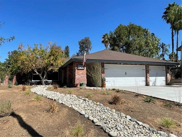 A two-story brick house with a brown roof is surrounded by a well-manicured garden. A stone pathway leads to the house, and there is a garage with a white door. The house has a prominent chimney and a flag on the roof. The garden features a variety of plants, including a large tree with green leaves to the left of the house and a smaller tree with green leaves to the right. There are also several potted plants and a bench near the house. | 6046 Saint Augustine Drive, Riverside, CA 92506 (#IV21209231) :: Rubino Real Estate | 83c13b9ac9deb5cb667cb7d0ef3e58c5e111ad7faa10a9bb44b55e81f7555925 | 000720962565 | 0 | 0 | 84 | 12 | 0 | 0 | |