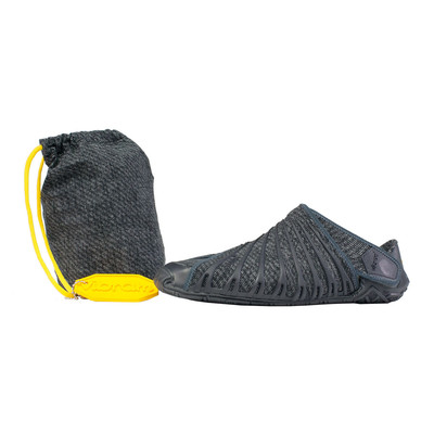A pair of black sandals with a woven design is placed next to a black drawstring bag with a yellow zipper pull. The sandals have a blue sole and are positioned on a white background. | Vibram Furoshiki Women's Wrap Shoes - SS20 | bb009477bb0687520ebf4670a4180b5b9ab114a7f8d3cf7554f0d63d2df89ce0 | 000720962515 | 0 | 0 | 35 | 7 | 0 | 0 | |