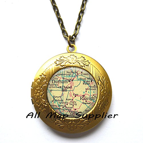 A golden pendant with a detailed map of the southeastern United States engraved on it. The map includes various cities and geographical features, and the pendant is attached to a chain. The pendant has an ornate design around the map, and the words 'All Map Supplier' are written below it. | Charming Locket Necklace Raleigh, North Carolina map Locket Pendant, Durham map Locket Pendant, map jewelry, map Locket - Glasses Raleigh | 043b0013c8a37af4e140c057434b72c03fd39d349233c4370ca1c05a50a3a813 | 000720962530 | 0 | 0 | 50 | 20 | 0 | 0 | |