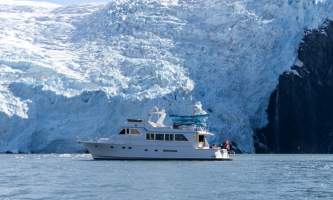 A white yacht with multiple decks and windows is sailing on calm waters near a large glacier. The glacier has a jagged edge and is surrounded by snow-covered mountains. There are two people on the yacht, one near the center and the other closer to the front. | Alaskan luxury cruises Seamistsideglacierwide | c84f0874cbdb37b3f1eb6a301f9dcb4dd84e51c91ed6e34a14fb32bce92ed990 | 000720962546 | 0 | 0 | 47 | 4 | 0 | 0 |