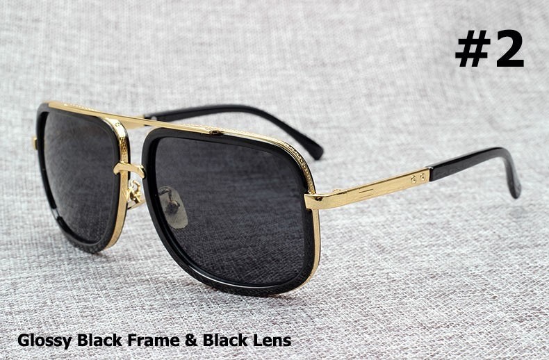 A pair of sunglasses with a black frame and gold accents is displayed against a grey background. The sunglasses have a reflective lens and are positioned at an angle, with the left side of the frame visible. The image includes a text overlay with the number '2' and the phrase 'Glossy Black Frame & Black Lens'. | 15d2afd4aac ... Mach One Adam Lambert Aviation Sunglasses Vintage Brand Design Sun Glasses 210 Product No 2070416. Item specifics Seller SKU InpLIiRLwn Brand | 8f45a9875eb233bedc5a5b1c094b5fa3fc36cf479fb1fd8b92a60e569cc5890f | 000720962894 | 0 | 0 | 56 | 23 | 0 | 0 | |