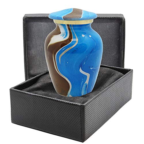 A blue and brown vase with a textured surface is displayed in a black velvet box. The vase has a wide base that tapers towards the top, and it is placed on a surface with a dark background. | Ocean Tides Beautiful Adult Cremation Urn | d2d8ecc864cec91911b266b2673b41b66db635b5efba221dec3d63d26d88e0b9 | 000720963001 | 0 | 0 | 38 | 6 | 0 | 0 | |