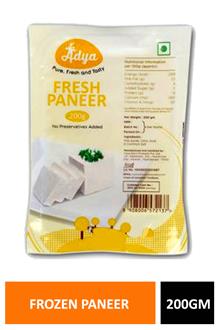 A package of frozen paneer with a label that reads 'ADYA FRESH & TASTY FROZEN PANEER' and '200GM'. The label also has a barcode and various nutritional information. The paneer is wrapped in a white plastic bag, and there is a picture of the paneer on the label. | Adya Frozen Paneer 200gm | f4cc38e513c9124ffa74cc49a63043bb1a6f309d04062f0e049a8153083a6e0f | 000720930291 | 0 | 0 | 48 | 4 | 0 | 0 | |