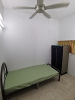 A small, empty room with a single bed in the center. The bed has a green mattress and is covered with a white sheet. There is a ceiling fan above the bed, and a refrigerator is placed against the wall to the right of the bed. The room has a plain white wall and a tiled floor. | Terrace House Room for Rent at Taman SEA, Petaling Jaya | c1248131a0a4f2d292443c69c237135272d154b00768853dc7e419532042af77 | 000720930123 | 0 | 0 | 57 | 10 | 0 | 0 | |
