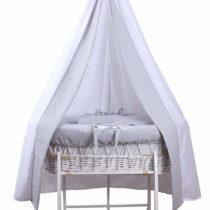 A white baby crib with a white canopy and a white blanket is displayed against a white background. | 6-Piece Grey Waffle White Wicker Moses Basket Starter Set | 877dfb186f39a93cb354c344721bce13099fa4fb37e08920bfabecb83baf54f2 | 000720964929 | 0 | 0 | 18 | 9 | 0 | 0 | |