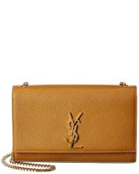 A beige Yves Saint Laurent logo embossed leather handbag with a chain strap and a gold-tone zipper closure. | Saint Laurent Brown Medium Kate Monogram Leather Shoulder Bag | 6f1596fdde1d7cb5672f1fcc12b769f9ab212748df5902a1daed5a13b4e533a1 | 000720930596 | 0 | 0 | 18 | 9 | 0 | 0 |