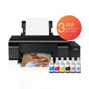 A black and white image of a printer with a paper tray on top, accompanied by a set of colorful ink cartridges and a printed image of a cat on a white background. The printer is placed on a white surface with a red and orange circular sticker in the background, featuring the text '3 anni garantite' and '3 anni di garanzia'. | Resigilat: Epson L805 Imprimanta Wi-Fi Inkjet A4 - RS125023567-15 | b9eb6ecb571538da7de70ed10871d80a681837678bd82aaa173b32aae74c0620 | 000720930538 | 0 | 0 | 62 | 9 | 0 | 0 | |