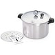 A shiny stainless steel pressure cooker with a black lid is placed on a white background. Next to the pressure cooker, there is a white ceramic lid with a black handle and a small white ceramic container with a black lid. | Presto 01755 16 Quart Aluminum Pressure Canner Cooker - Thumbnail 4 | ab6d601fbf540a2b149668fa720196bd4d27e3f27de0a1c8e27b3a67c4f2d1b5 | 000720965375 | 0 | 0 | 41 | 11 | 0 | 0 | |