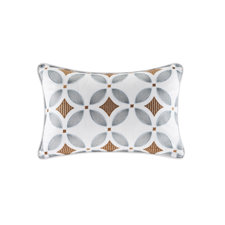 A white cushion with a geometric pattern featuring concentric circles and a central hexagon, with a beige border, is displayed against a white background. | Sakura Cotton Throw Pillow | 684915a0f40645429abeb6b14c1d642cdad8769b76481c0e7330d31a7fa200bb | 000720965391 | 0 | 0 | 24 | 4 | 0 | 0 | |