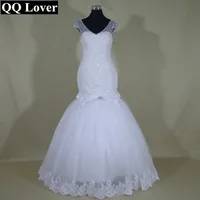 A white wedding dress with a fitted bodice, long sleeves, and a full skirt with lace details is displayed on a mannequin. The dress has a high neckline and a V-shaped back. The mannequin is set against a plain background with a shadow cast on the wall behind it. | QQ Lover 2017 Luxury African White Wedding Dresses Mermaid Plus Size Bridal Gown Vintage Lace Cap | a511f52cd79d26a585564f8e8b84ba60973fcb8c2755b52b506625d92f33373e | 000720965628 | 0 | 0 | 49 | 16 | 0 | 0 | |