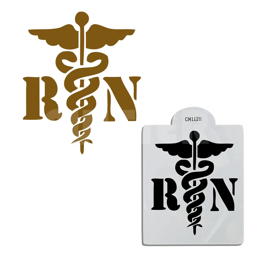 A stylized image featuring a large, golden caduceus symbol with a snake entwined around it, placed above the letters 'R' and 'N' in a bold, black font. Below the caduceus, there is a smaller version of the symbol with the letters 'CHL1 11' written in a smaller, white font. The image has a white background. | Nursing Caduceus Medical Nurse Symbol Cake Stencilpastry Cake | c81ee309b09286621cd1dc00cf855510b5f4c4457aee20bc056b518d520909cb | 000720965630 | 0 | 0 | 55 | 8 | 0 | 0 | |