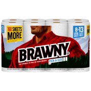 A close-up image of a man's face with a red plaid shirt and a mustache, with the word 'BRAWNY' written across his chest. The background features a blurred forest scene with trees and a hint of a mountain. The image is overlaid with a product label that includes the phrase '160 SHEETS PER ROLL' and 'THE STRENGTH YOU NEE... | Brawny Paper Towels, 8 Large Plus Rolls, Pick-A-Size | 4664ec1452e847bda4e4d4ce4c5c5910b435e6dca5f3d6c3b575c3b10f5e8a97 | 000720965740 | 0 | 0 | 63 | 8 | 0 | 0 | |