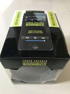 A black box with a green and white label is open, revealing a Touch Speaker Boombox inside. The speaker is black with a touch-sensitive interface and a small screen displaying music controls. The box is placed on a white surface. | Touch Speaker Boombox | 7a6947d78e4565bfcc8d1d1ec4fde0c534343020bd8b7103973b97d609a94c5c | 000720965719 | 0 | 0 | 40 | 3 | 0 | 0 | |