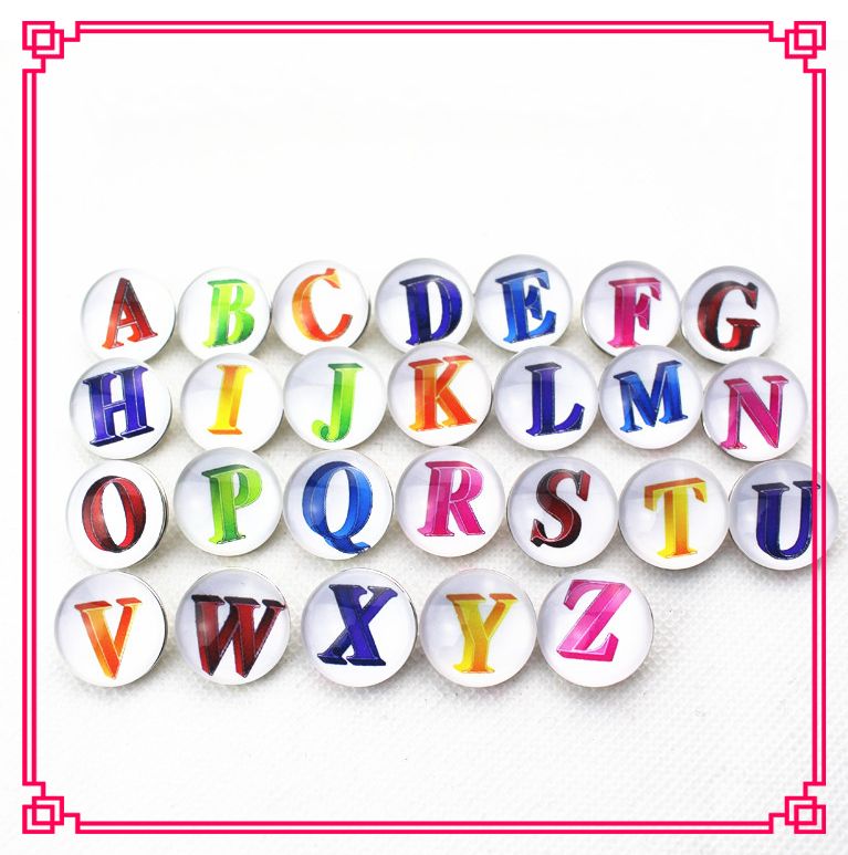 A collection of colorful alphabet buttons is arranged in a random order on a white background. The buttons are of various shapes and sizes, with each letter of the alphabet represented. The buttons are placed close together, and the letters are not in any specific order. The background is a plain white color, and the b... | Vente chaude / Mix A-Z lettres boutons pression DIY 18mm Snap Collier Bracelet Bracelets DIY Snap Bijoux Charmes | bf3af74a5da8ec539bad8271337c1249bef688a1d5a88829c8eeaedf36b3fb83 | 000720965792 | 0 | 0 | 63 | 18 | 0 | 0 | |
