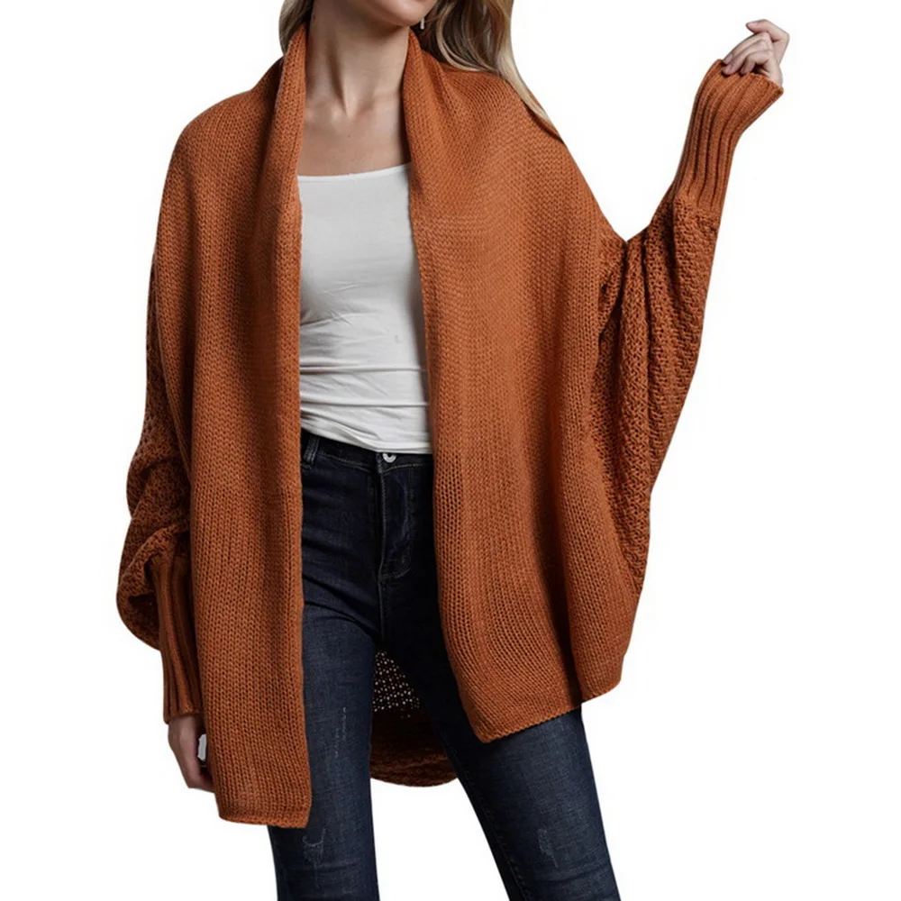 A woman is wearing a white tank top, blue jeans, and a brown cardigan with a knitted texture. | Women 39 s Cardigan Sweater Coats Loose Long Bat Sleeve Knitted Cardigan Sweater Tops Large Size Autumn Knitted Jumpers Outwears in Cardigans from Women 39 s Clothing | fd203c95dbf389b20df02a569dbdf4a696a422d55b733de380bfeea61d86f387 | 000720966229 | 0 | 0 | 18 | 27 | 0 | 0 | |