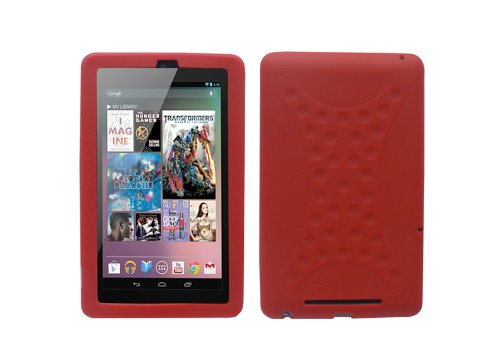 A red tablet with a black screen displaying various colorful book covers is shown. The tablet is placed on a surface with a red background, and the screen is on, displaying the book covers in a grid layout. | iShoppingdeals - for ASUS Google Nexus 7 Tablet Soft Silicone Skin Cover Case, - Tablet Inch Nexus 7 Case | 61790865f9121e5cf6faad27277273213f4c79e354af54baf281d6d0f0d6964b | 000720966289 | 0 | 0 | 38 | 19 | 0 | 0 | |