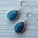 A pair of silver earrings with blue gemstones are displayed against a white background. | Teal Blue Green Earrings Silver Frame Bezel Teardrop Chalcedony Peacock Blue Briolette Faceted Earrings | 8b968f8f9f148e404e05d9733c8751c4000f00e0a90a0aedd5153ecfb09ec8fb | 000720966067 | 0 | 0 | 14 | 14 | 0 | 0 | |