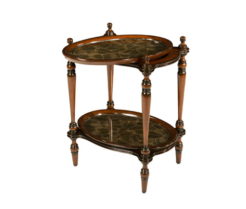 A wooden table with a round top and four legs, each with a carved design. The table has a smooth, dark brown finish and is set against a white background. | Michael Amini - Rubber Leaf Accent Tray Table - ACF-ACT-MNSR-013 | 1eb1ec838687958e8e822d512153c0cf8a9c14a4b1ad438b3ba2d105dc80200b | 000720966137 | 0 | 0 | 30 | 10 | 0 | 0 | |