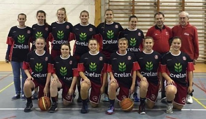 A group of young women wearing red and black uniforms with the word 'Crealan' on them are posing for a team photo. They are standing on a basketball court with a basketball on the floor in front of them. There are two men in red shirts standing behind the women, and a woman in a blue shirt is standing to the left of th... | BC BRAINE LE CHATEAU 2016/2017 | b9a48578c5c26049e397c9f0b20ebfe2fddfdf2c56d9eca9f85bfa23170b8e84 | 000720966251 | 0 | 0 | 65 | 5 | 0 | 0 | |